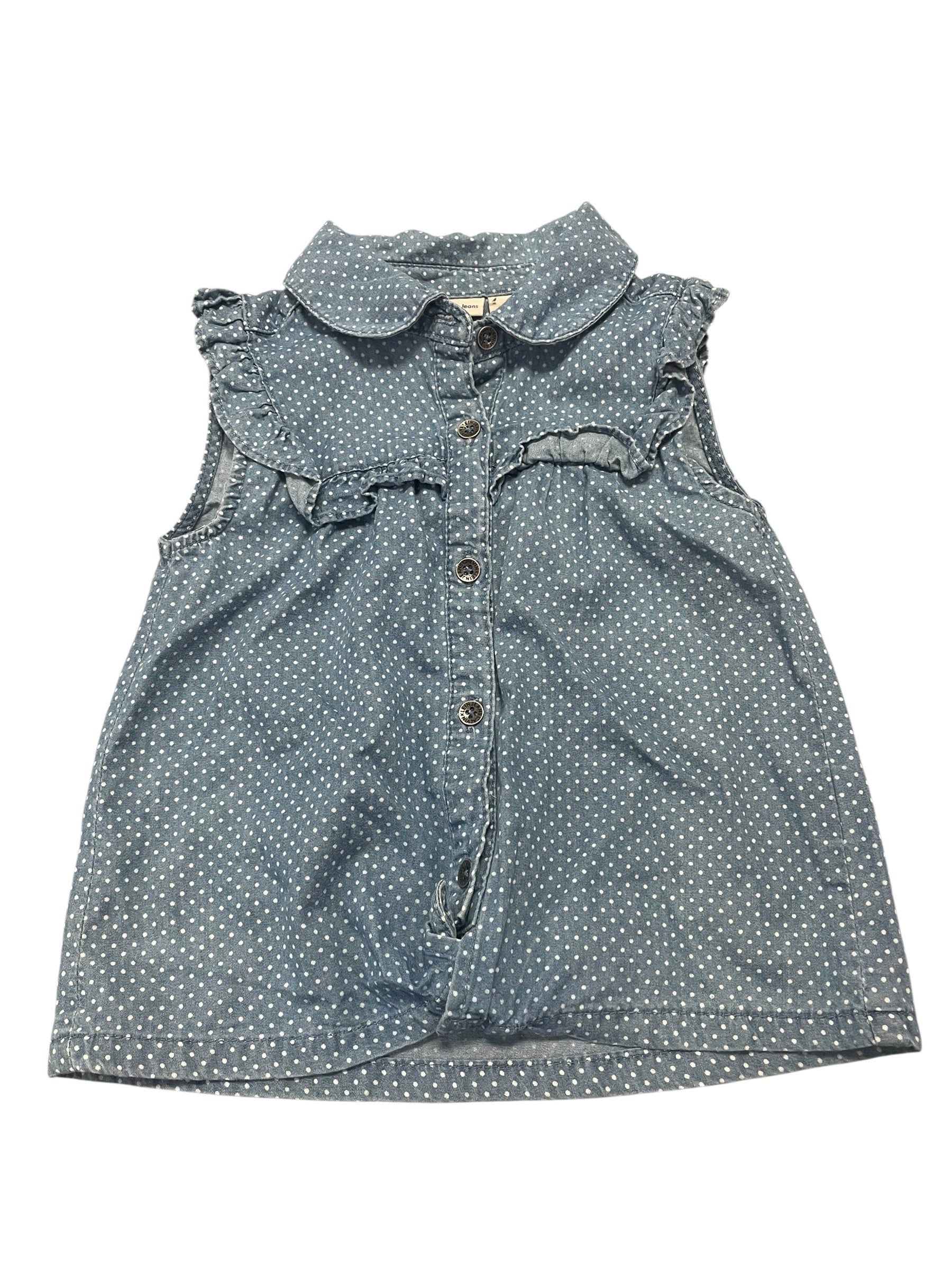 Denim Button Up Tank with ruffles. Made by Calvin Klein and size 6.