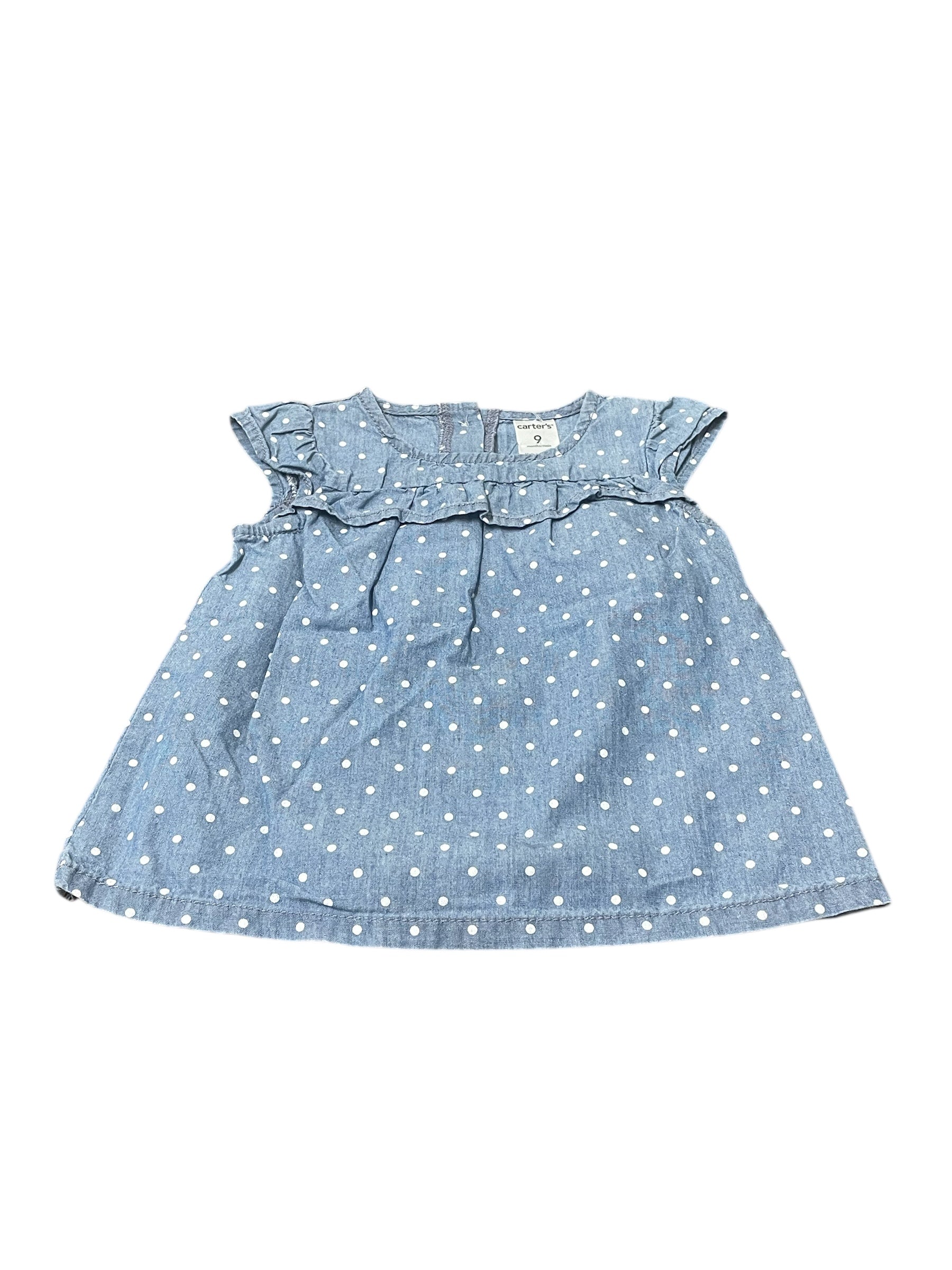 Polka dot denim tank with ruffles. Made by Carters size 9 months.