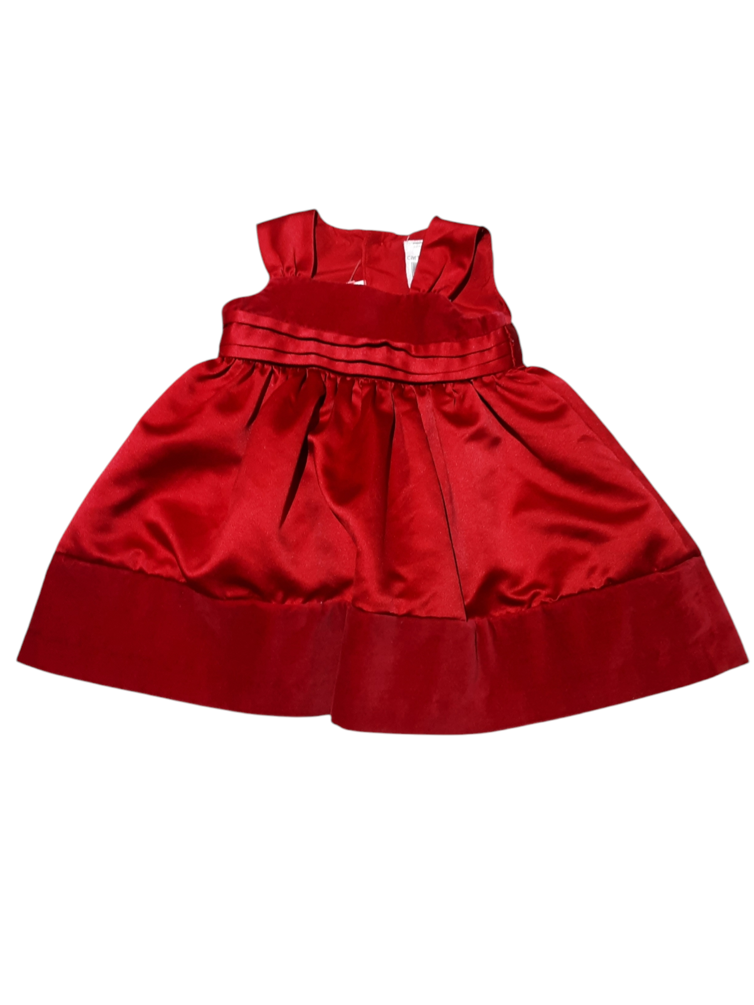 Red silk fancy dress with velvet ribbon detailing, size 3m, Carter's