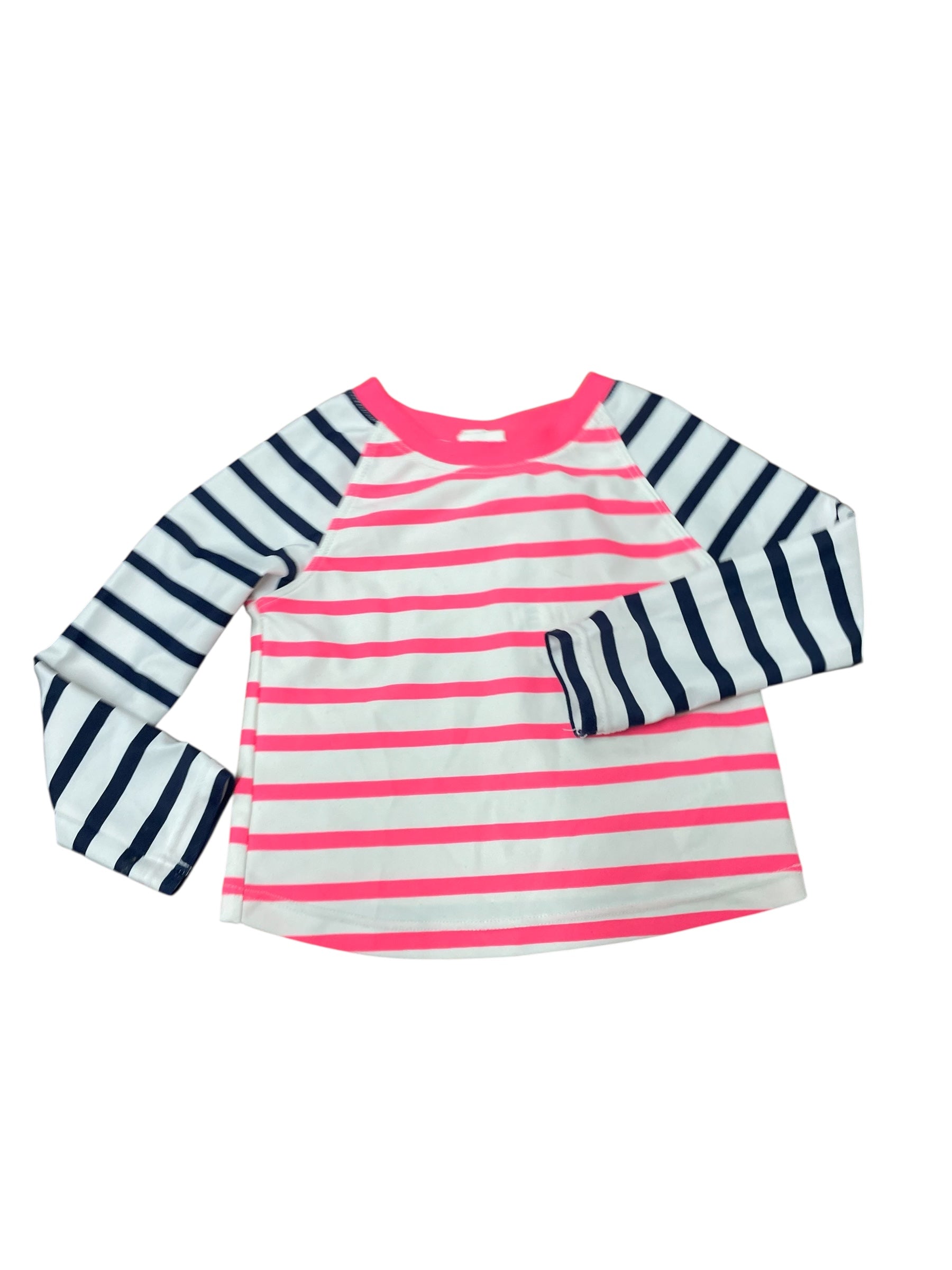 Striped white, black and bright pink rash guard size 12/18 Months by Baby Gap.